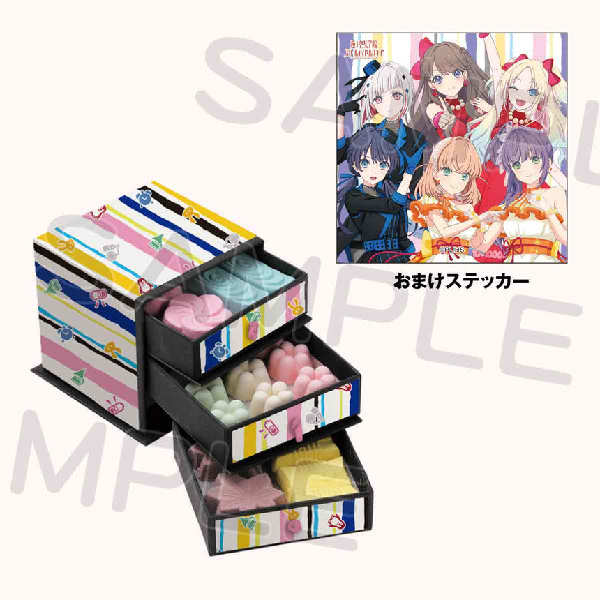 学院のある金沢で、170年以上続く老舗和菓子屋、諸江屋の落雁。諸江屋の代表的な柄をメンバー(ユニット)の色にした特別アイテム!
